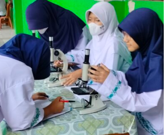 Drs. Saarih selaku guru mata pelajaran IPS mempraktekkan kepada siswanya untuk melihat serat daun yang diambil dari halaman sekitar sekolah untuk dilihat oleh siswa dan dicatat bagian-bagian dahan tersebut. Dengan menggunakan peralatan Mikroskop para siswa dapat mengetahui juga makhluk yang ada di dahan atau daun tersebut.